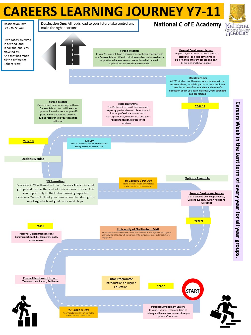 At National, we believe that everything our students do during their time at the academy should support and encourage them towards their further education and career aspirations. The academy offers a range of opportunities throughout all key stages to ensure that our students are armed with information, guidance and knowledge in order to make the right decisions about their future.