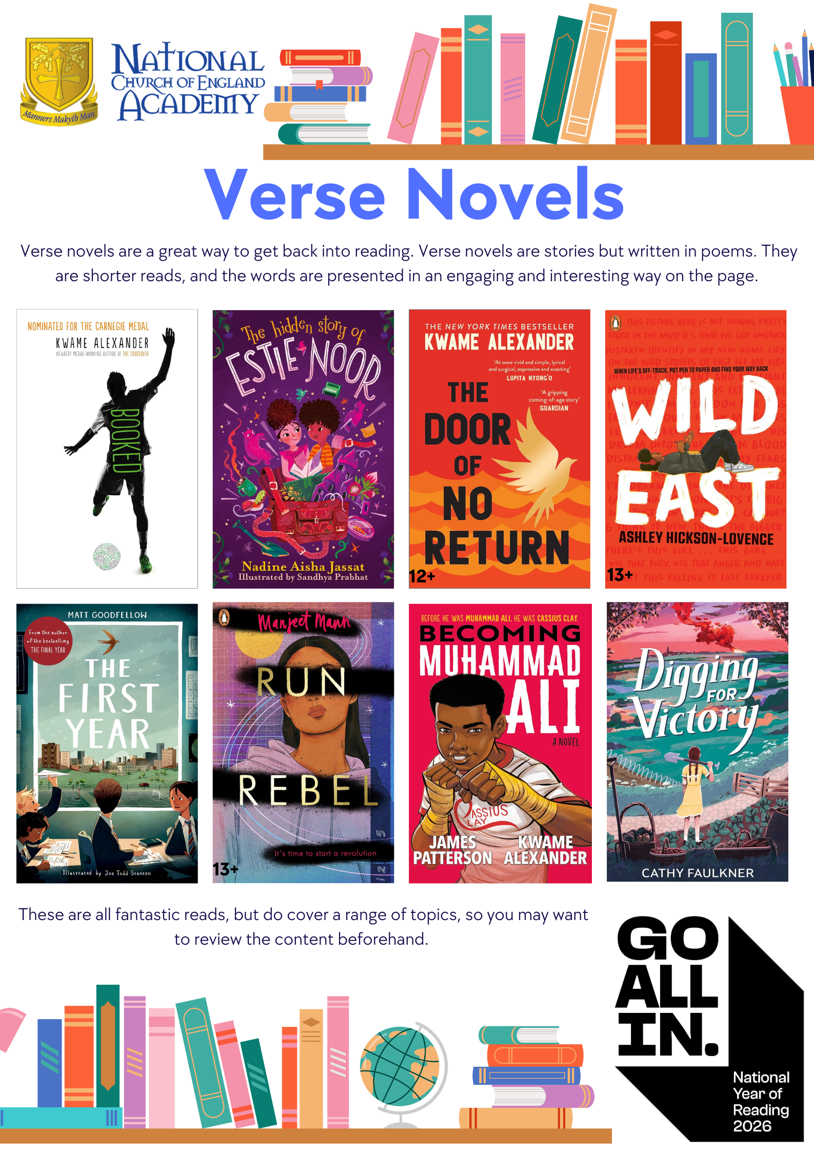 Please find below our regular reading recommendations from our academy librarian, Mrs Prestwood.